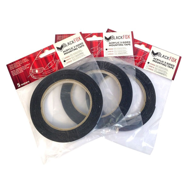 Лента пенакриловая Black Fox двухсторонняя с очень сильной адгезией к металлам, стеклу и большинству видов пластика. Устойчива к растворителям, позволяет перемещать склеиваемые поверхности, заменяет традиционные болты и заклепки.