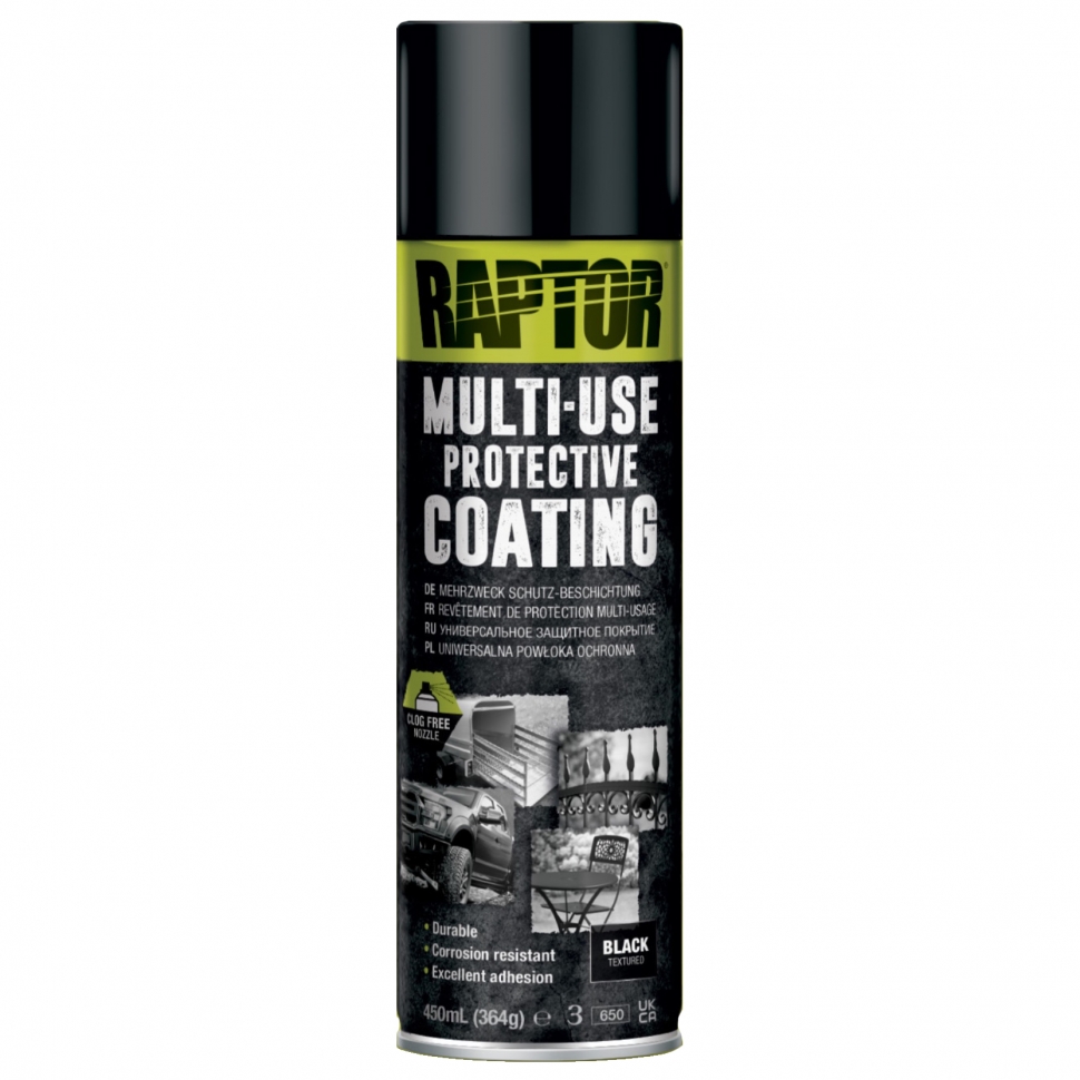 Универсальное защитное однокомпонентное покрытие RAPTOR™ U-POL в аэрозоле объемом 450мл при нанесении образует стойкую поверхность, стойкую к истиранию. Аэрозоль достаточно прост в использовании и отлично подходит для защиты широкого спектра поверхностей в быту, а также для незначительного авторемонта.