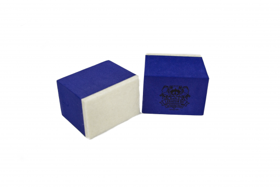 Аппликатор из твердого вспененного полиуретана, с приклеенным с одной стороны плотным фетром. Предназначен для удаления глубоких загрязнений и водного камня со стекл с использованием абразивных очистителей, например, при подготовке остекления к нанесению антидождевого репеллента.
