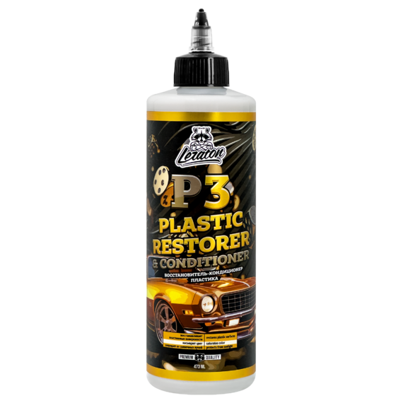 Восстановитель-кондиционер для внешнего неокрашенного пластика на основе новейших полимеров. Защищает пластиковые элементы от выгорания, потускнения и потери блеска. Заполняет мелкие царапины. Придает поверхности равномерный глубокий полуматовый цвет. Наделяет пластик антистатическими и водоотталкивающими свойствами. Легко располировывается и быстро высыхает, не оставляя разводов и жирных следов. При разведении 1:1 оставляет чистый матовый финиш и может использоваться для пластиковых элементов в салоне автомобиля.