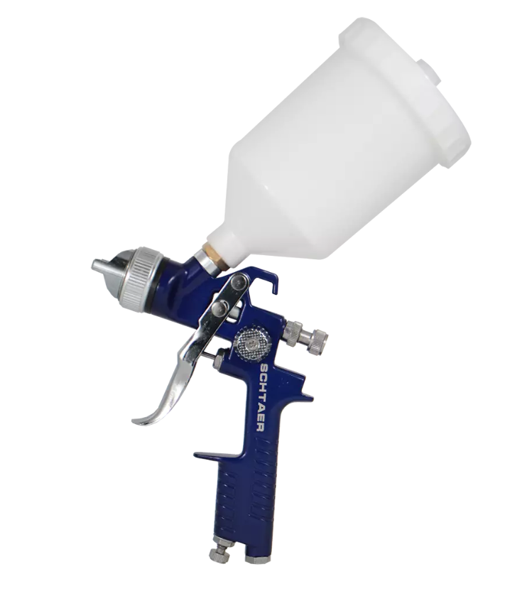 Краскораспылитель SCHTAER SCH-827 с верхним бачком предназначен для распыления базовых покрытий, лака, грунтовок.
