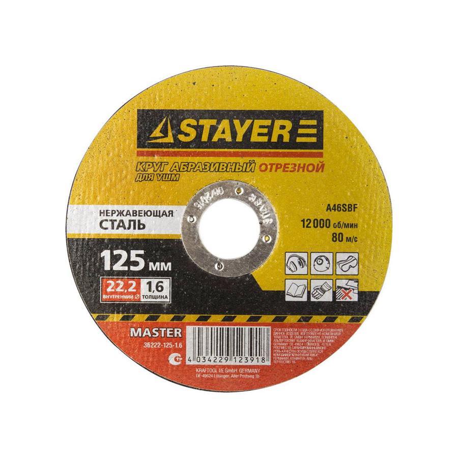 36222-125-1,6 Круг отрезной абразивный STAYER "МАСТЕР" по нержавеющей стали.125-1,6-22,2 мм