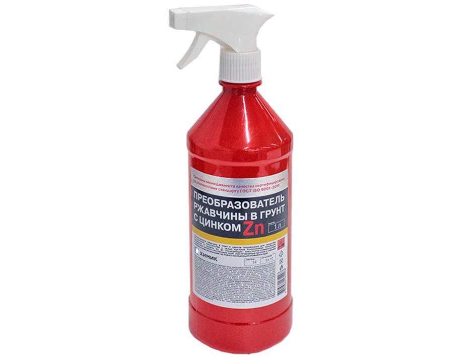 Преобразователь ржавчины в грунт с цинком предназначен для обработки металлических (стальных) поверхностей с целью удаления (преобразования) коррозионных поражений (ржавчины) и защиты обработанных поверхностей от последующих атмосферно- климатических воздействий, а также образующий грунтовочный слой, обеспечивающий прочную адгезию с любыми лакокрасочными материалами. Не требует последующей промывки водой, нейтрализации и грунтования. Преобразователь ржавчины в грунт с цинком представляет собой водный раствор ортофосфорной кислоты с модифицирующими добавками. Выпускается по ТУ 2389-117-00205357-2010