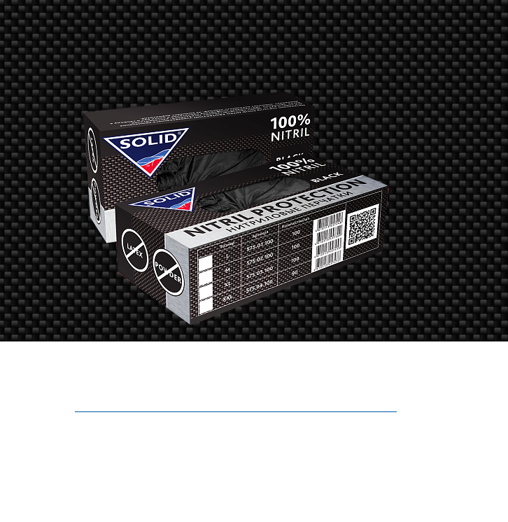 Нитриловые перчатки SOLID NITRIL PROTECTION универсального применения для защиты рук от общих производственных загрязнений, растворителей, масел, автохимии, обеспечивает комфортное прилегание к кисти рук и свободу в движениях, понижает потливость ладоней, не вызывает дерматитов.